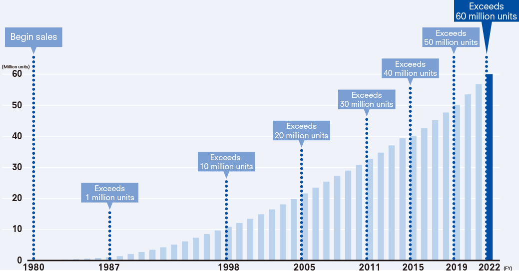 Launched in 1980, WASHLET has gradually become commonplace in housing facilities in Japan. Overseas, sales of WASHLET have continued to grow, and by August 2022 we had shipped over 60 million units of WASHLET around the world.