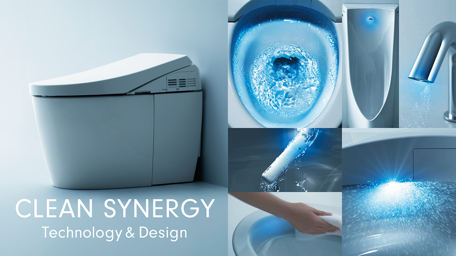 Hydrophilic describes organisms and materials that attract water. CEFIONTECT is hydrophilic. Water spreads easily over the toilet bowl, so waste particles easily wash away.