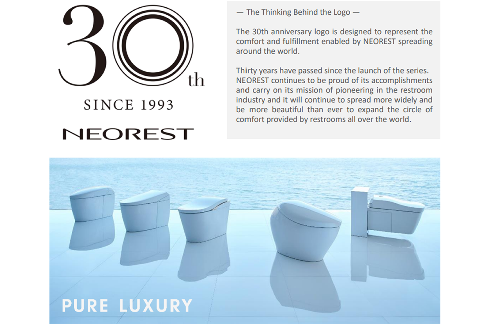Top-Class Series of TOTO Toilets NEOREST Celebrates the 30th Anniversary of Its Launch The brand continues to create a new culture of restrooms and leads the world’s toilet market