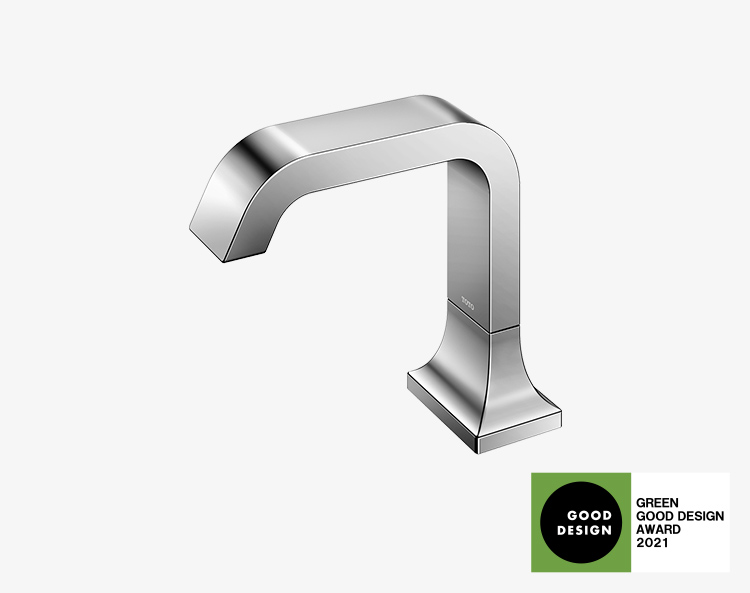 The guest room uses the same design statement and sensor-operated TOUCHLESS FAUCETS.