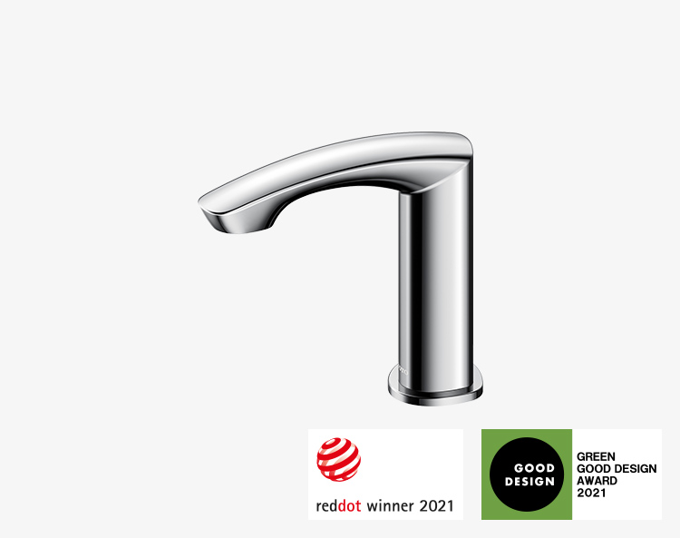 The guest room uses the same design statement and sensor-operated TOUCHLESS FAUCETS.