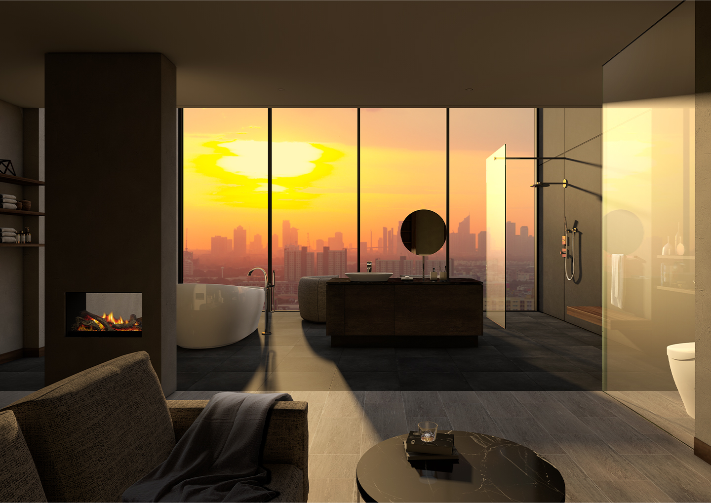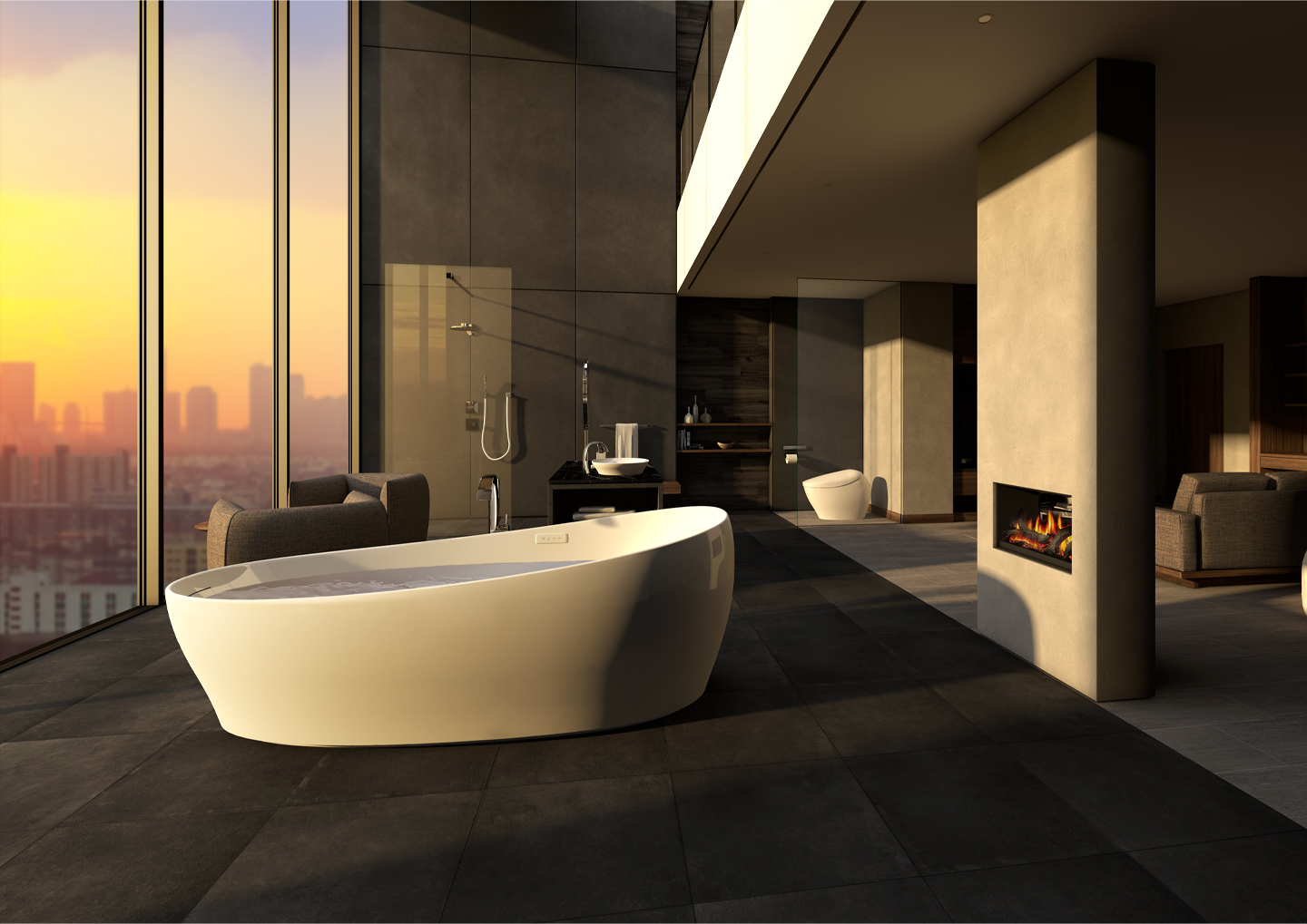 In this luxury bath space overlooking the city below, you are freed from the cares and responsibilities of everyday life.