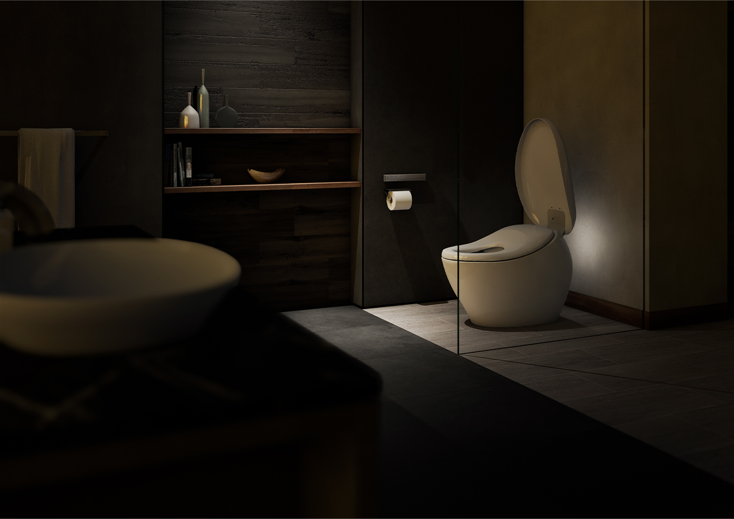 NEOREST Smart Toilet, which stands beautifully in the corner like an objet de art, gives an even higher sense of luxury to the space.