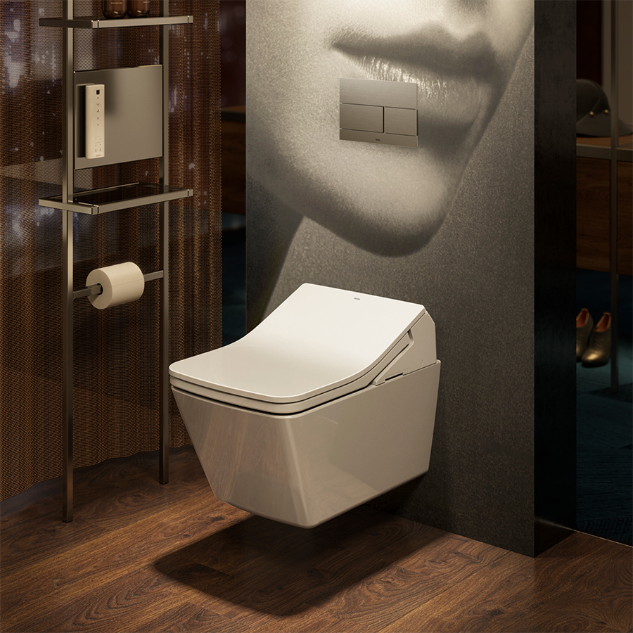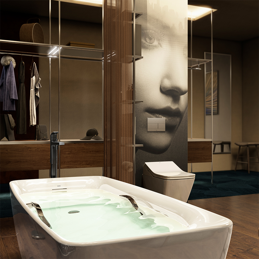 The TOTO products that adorn the space are characterized by their rectangular design lines that complement the design statement of the room.